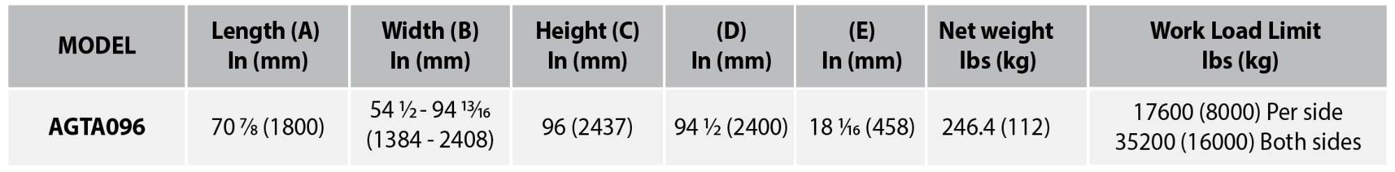 Technical Specifications of Abaco Adjustable Giant Truck A-Frame
