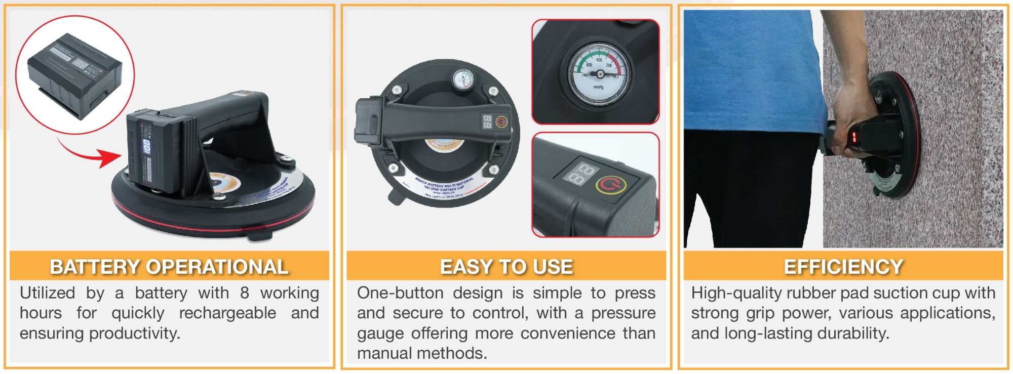 Battery Multi Material Vacuum Suction Cup: An advanced device offers powerful suction, ensuring stability and high productivity.