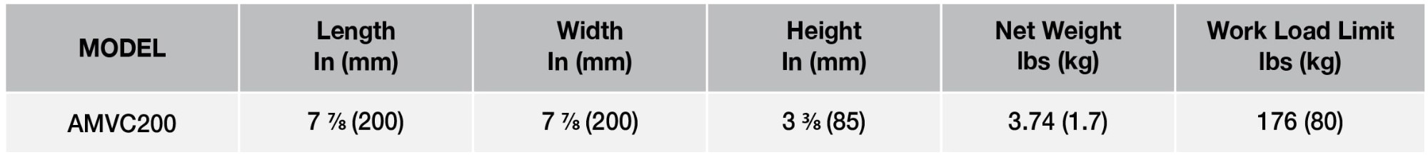 Technical Specifications of the Abaco Vacuum Suction Cup AMVC200: