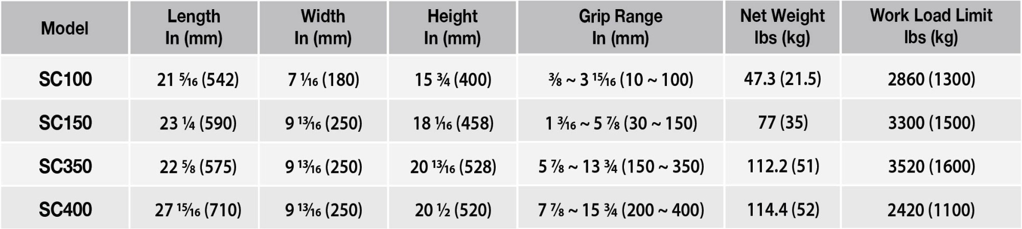 - We developed the Scissor Clamp with multiple product models such as the SC100, SC150, SC350, and SC400. The diversity of our product will satisfy all client requirements and provide many kinds of business solutions in the stone and glass fabrication industry.