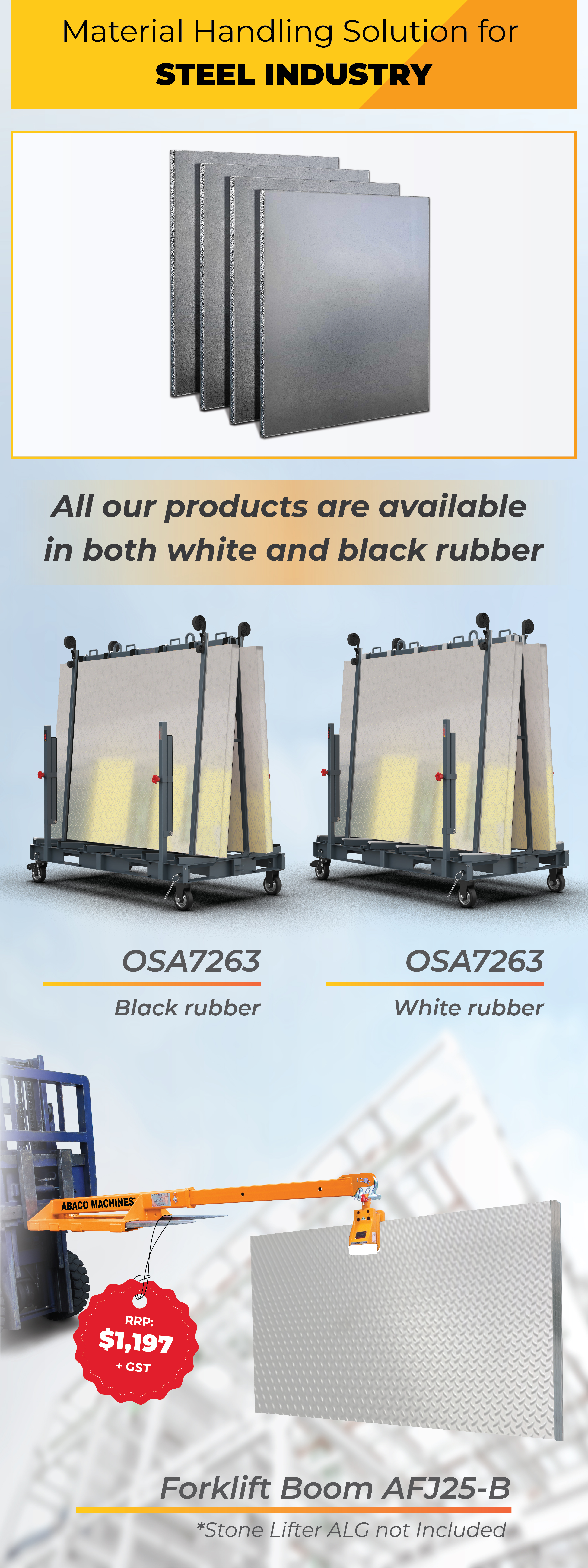 Abaco TPS Forklift Boom 3 In 1 is an innovative lifting solution designed to enhance the productivity of handling material slabs.