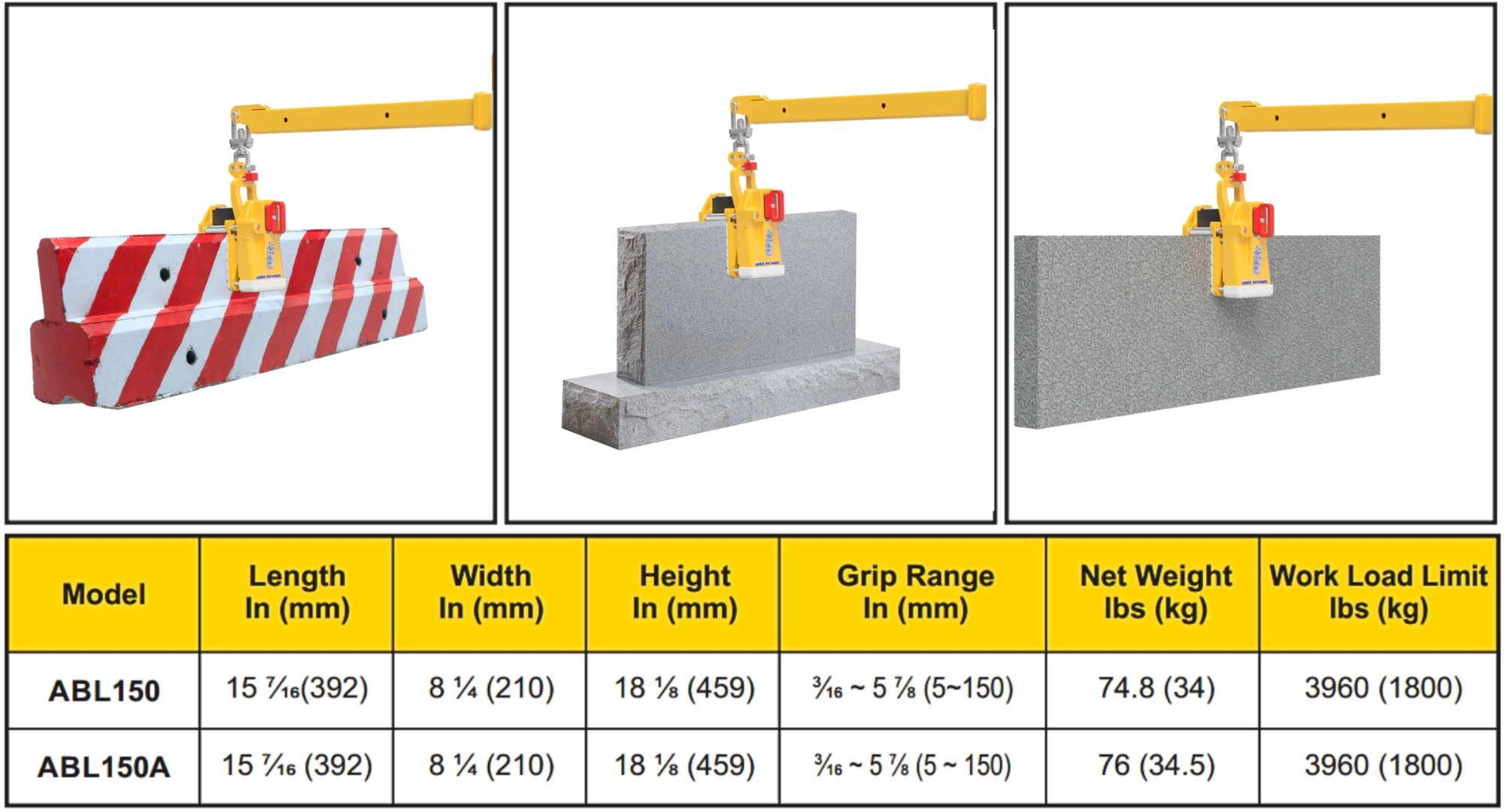 ABL150 and ABL150A are two products from the Stone Slab Lifter series. We develop these models to offer alternative solutions for your business requirement.