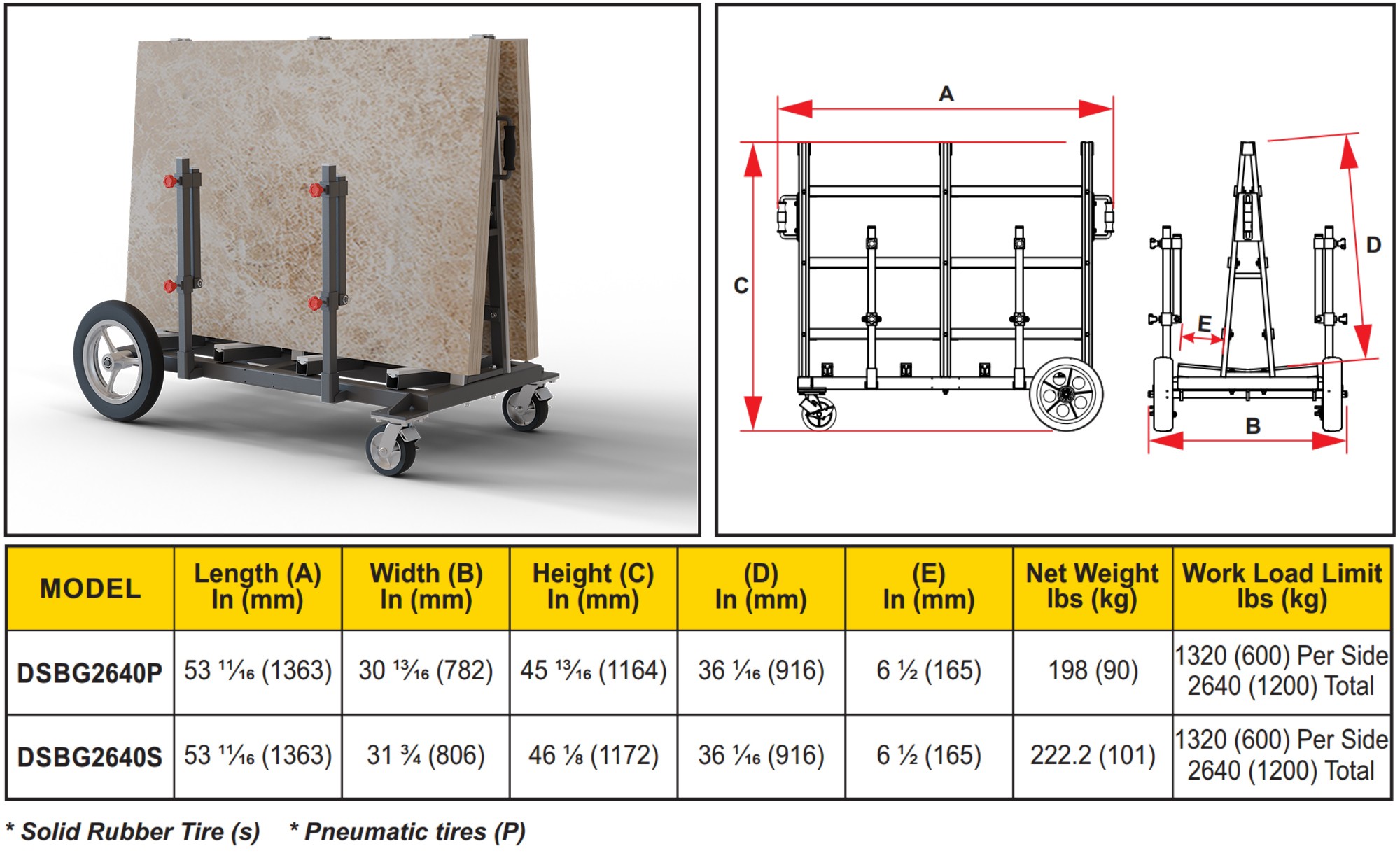 The Slab Buggy series comes with the DSBG2640P and DSBG2640S variants. These products solve customer problems and provide greater options for managing large stone slabs.