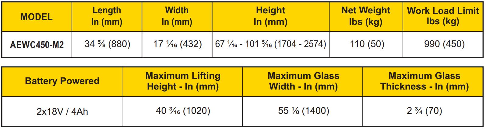 Technical specifications of Abaco EZ-Pro Winch Cart