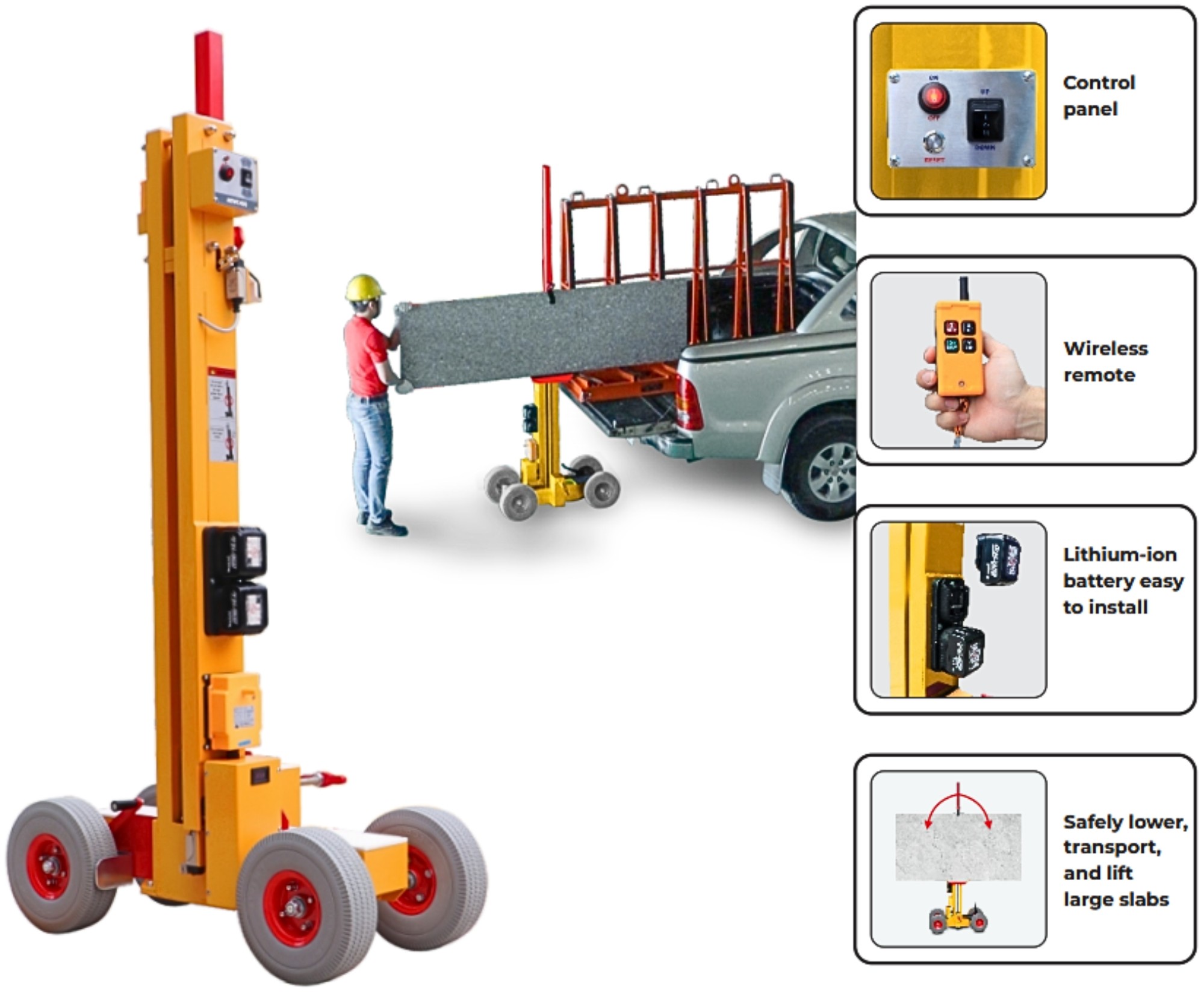 The Slab Cart is designed with advanced dimensions and specifications to move large stone slabs in any small working area securely and efficiently.
