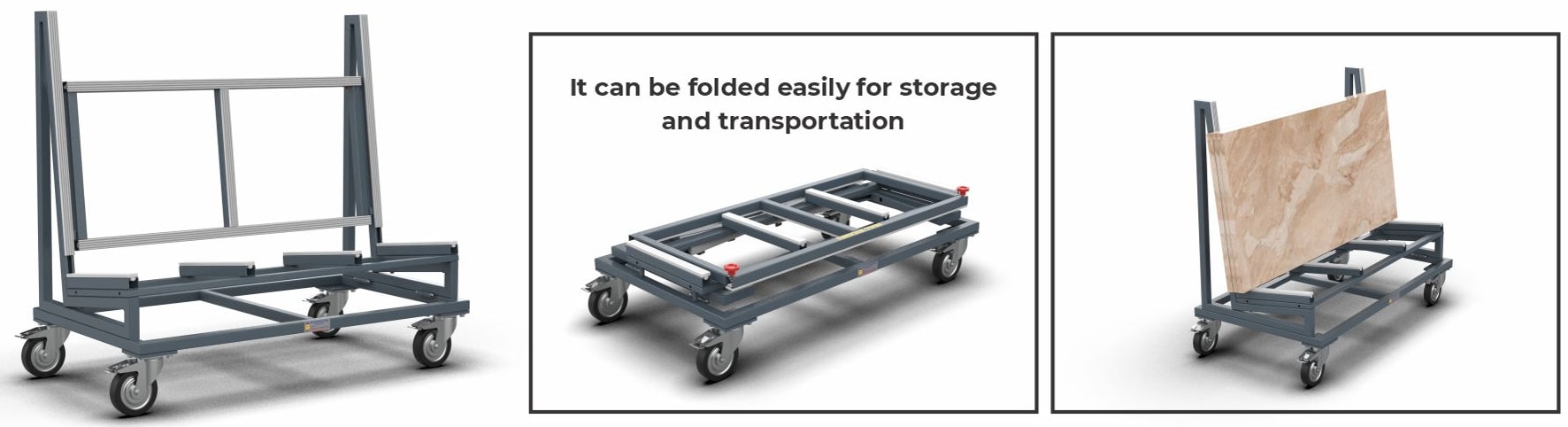 Abaco Folding Trolley Frame is a new design for transporting stone slabs with maximum capacity and solid design. The solid construction of this Folding Trolley offers more durable and reliable features.