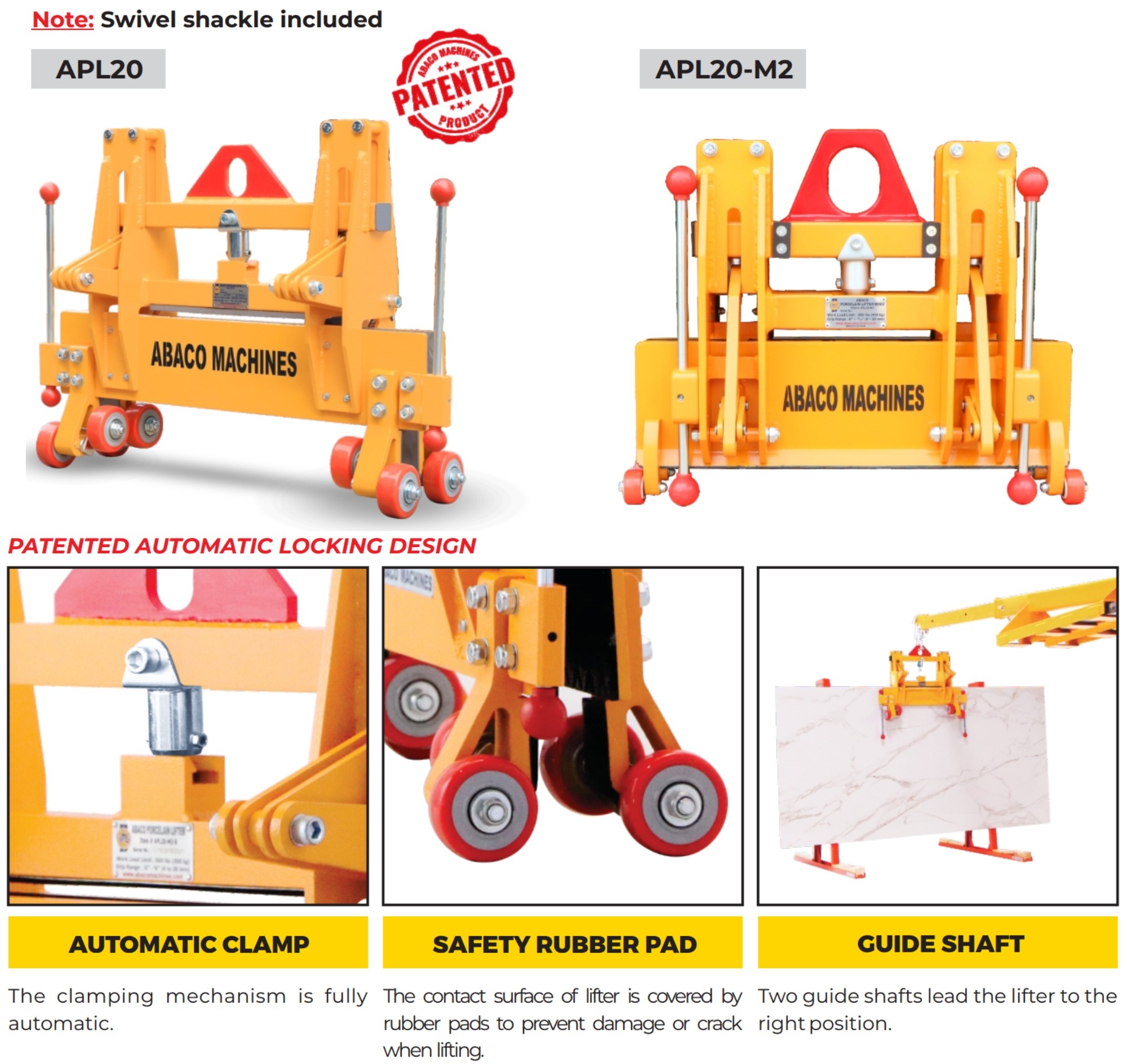 Dimensions and specifications of the lifter provide convenient and special features to handle different sizes of stone slabs.
