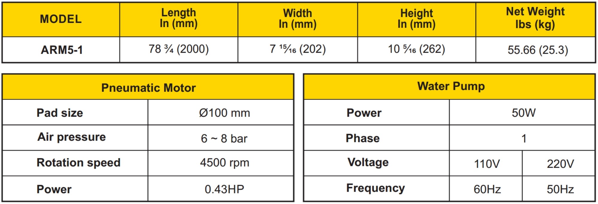 Technical Specifications of Abaco Rail Machine 5 in 1