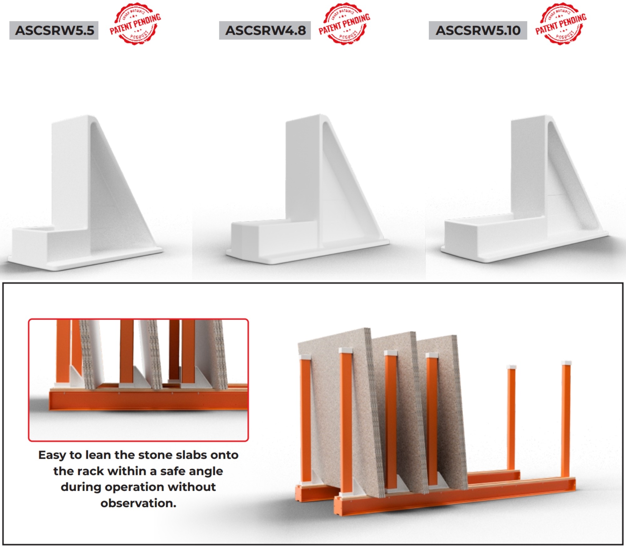 The Abaco Safety Corner Slab Rack Wedge is a great solution to maintain an appropriate tilt angle for protecting the slabs or tiles on the rack. ASCSRW4.8, ASCSRW5.5, and ASCSRW5.10 are three upgraded models from the Slab Wedge series, and they provide higher protection for storing stone slabs.