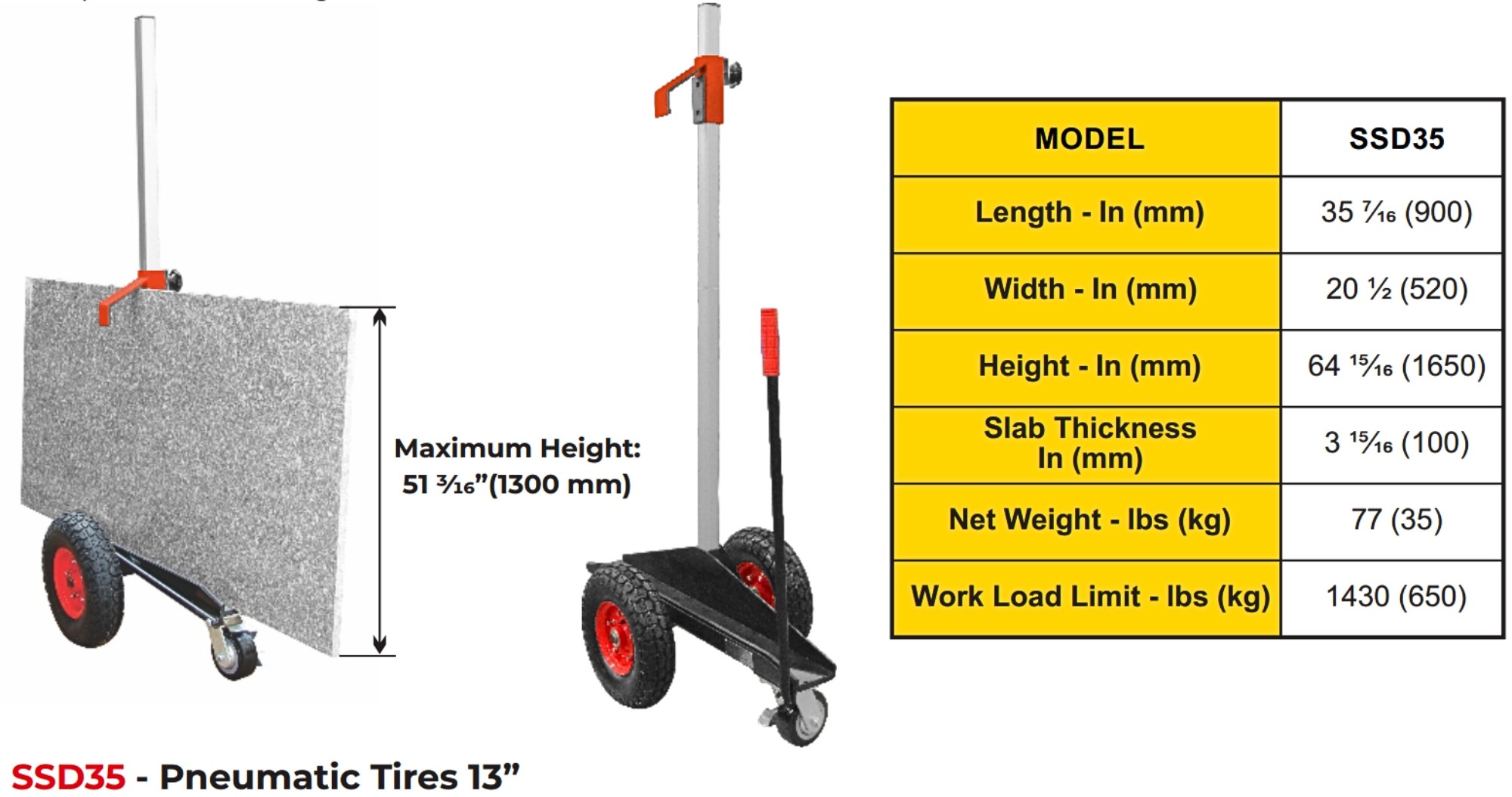 Our Stone Slab Dolly has ideal dimensions and specifications that enable transport stone slabs easier in confined working environments.