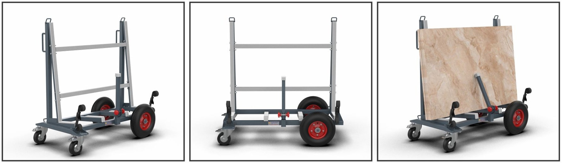 Slab Buggy is made of steel for great sturdiness and durability to work with weighting slabs up to 1155 lbs (525 kg).