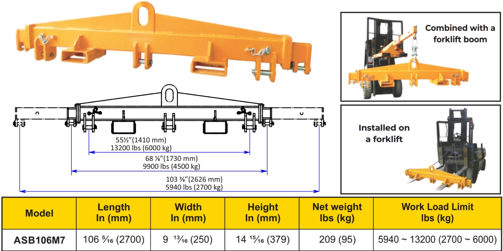 Abaco Spreader Bar M7 is an efficient supporting tool to connect with a forklift truck for maneuvering slabs safely. It is an effective spreader lifting bar in optimizing the time and labor costs while lifting and transporting stone slabs.