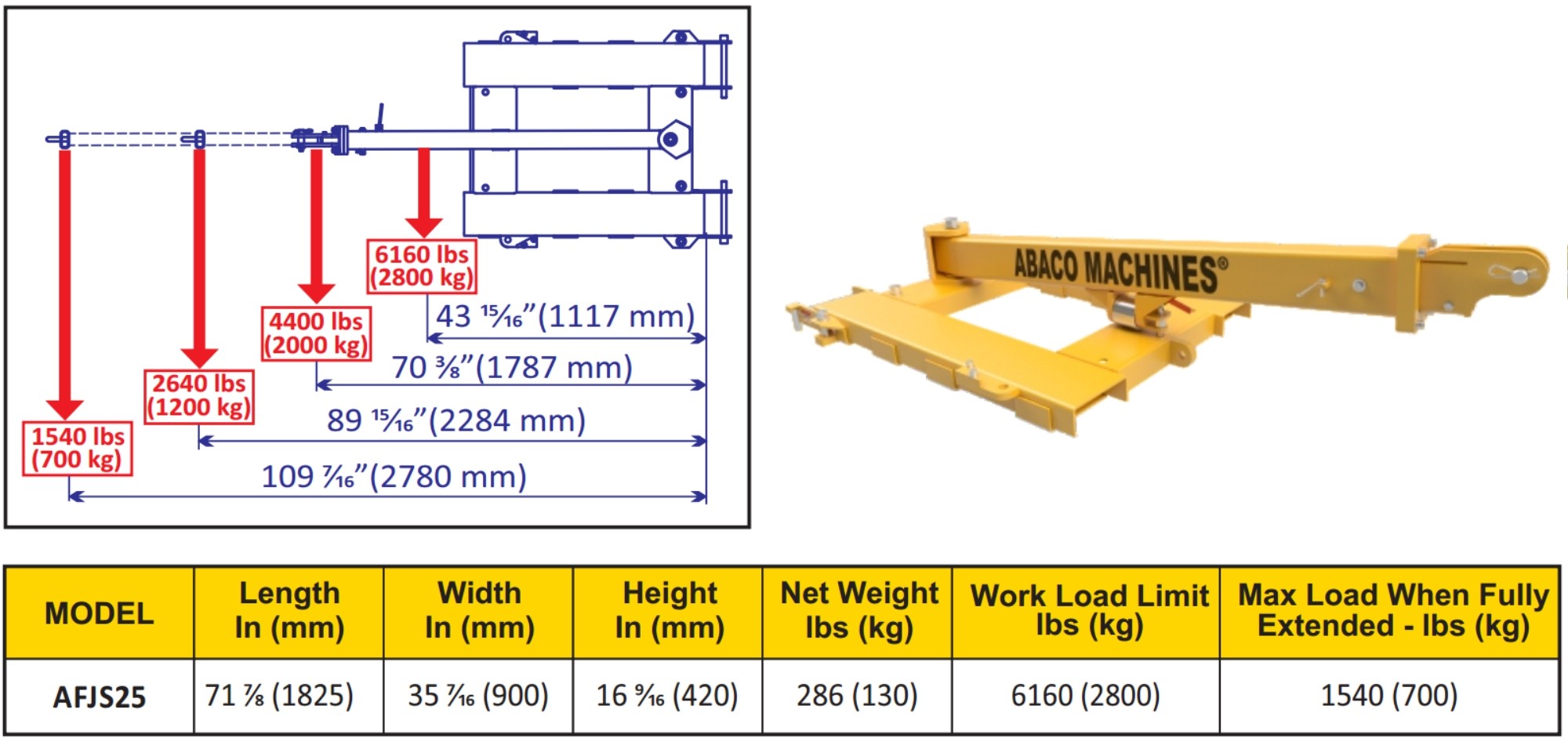Technical specifications of Abaco Swing Arm Forklift Boom