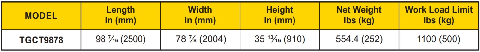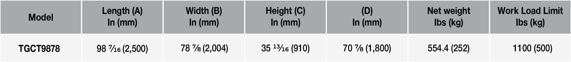 Technical specifications of Abaco Tilt Glass Cutting Table