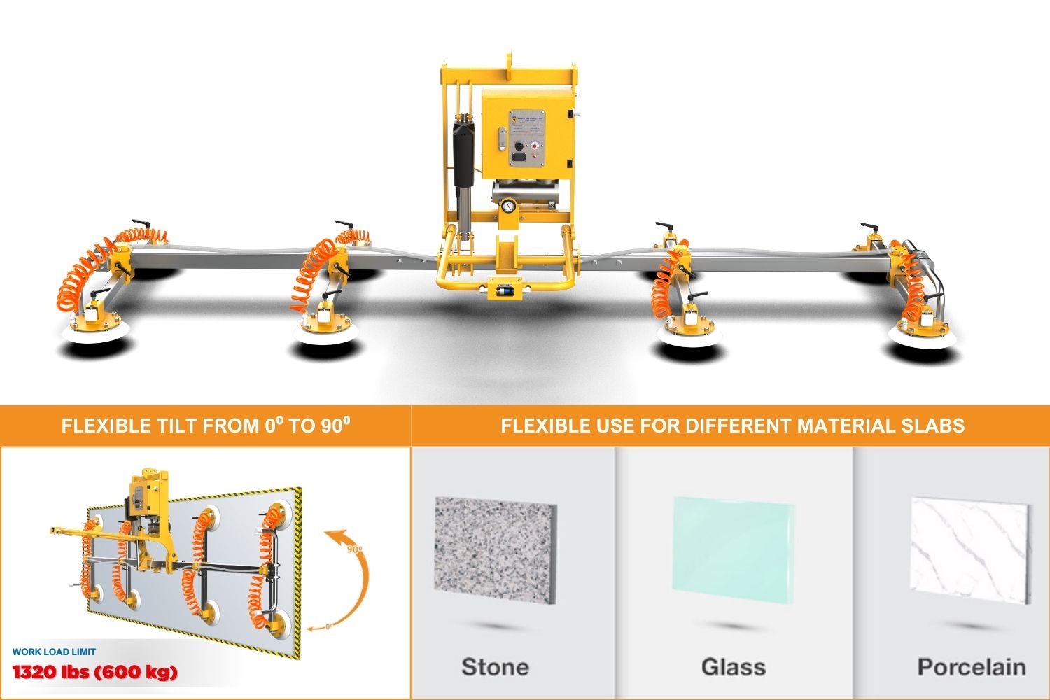 Our Vacuum Lifter has upgraded dimensions and specifications to transport slabs more safely and effectively.