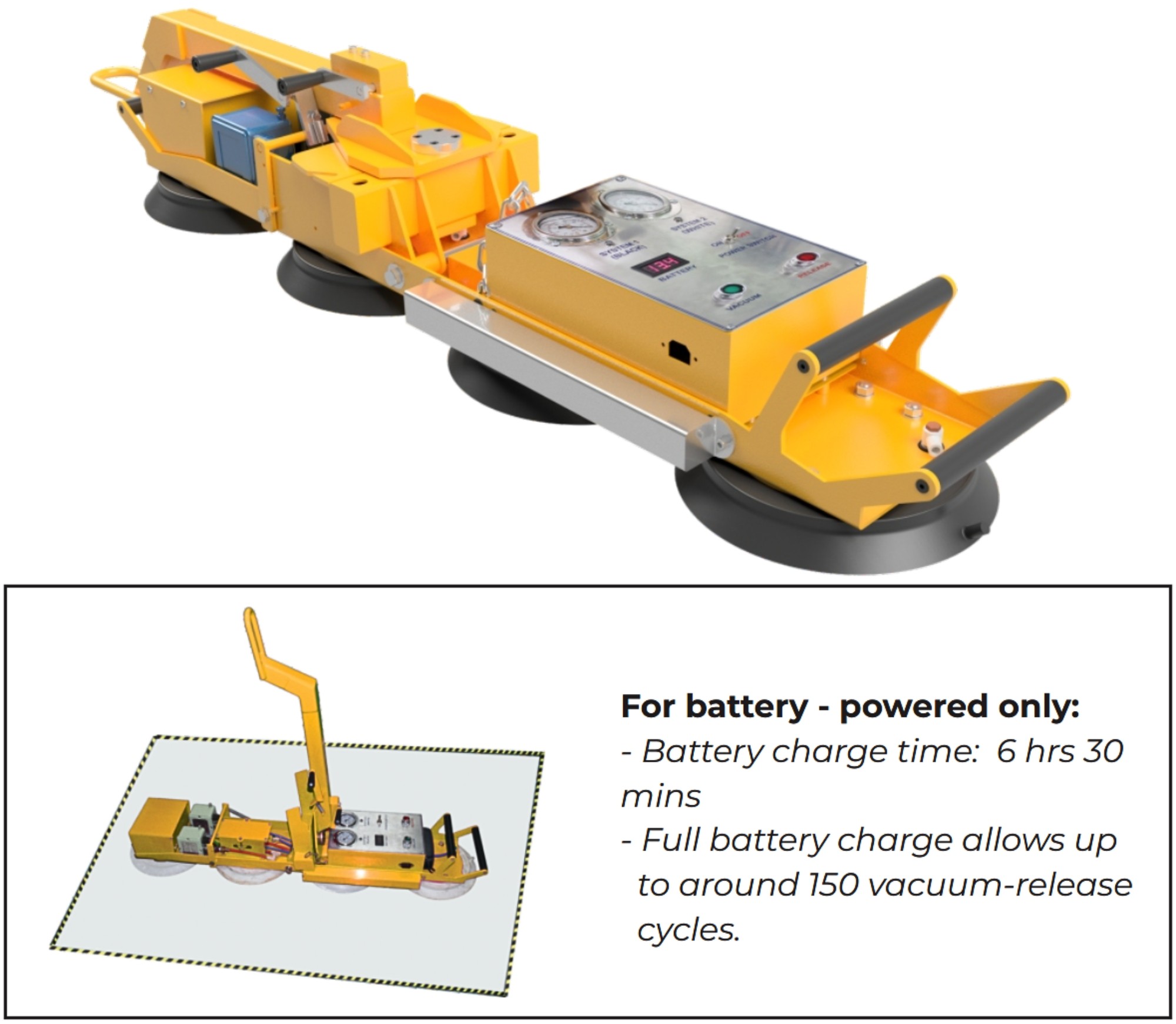 The Vacuum Lifter has exceptional dimensions and specifications have been the perfect choice for any project moving material slabs efficiently.