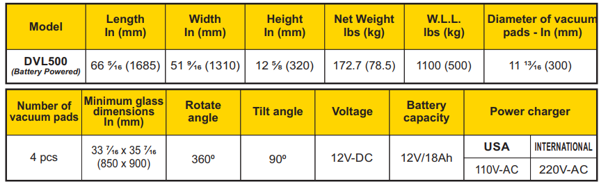 The Vacuum Lifter has impressive dimensions and features, offering a safe and effective method of handling and transporting large material sheets.